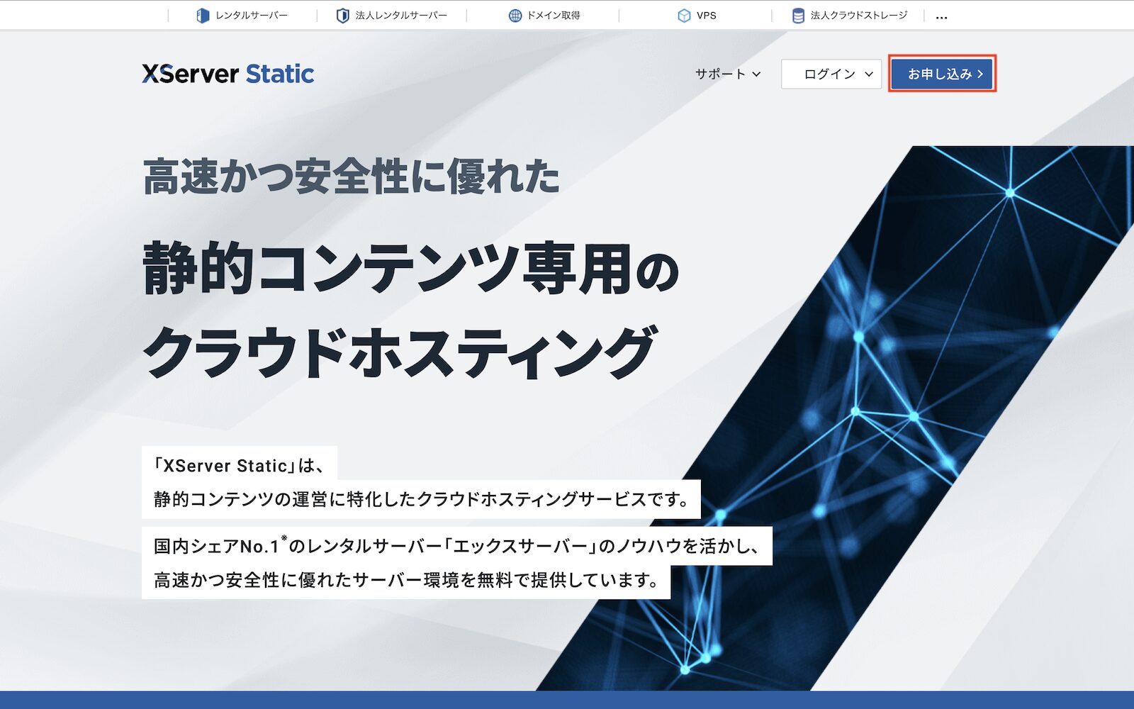 XServer Staticは、エックスサーバー株式会社が提供する、静的コンテンツの運営に特化したクラウドホスティングサービスです。