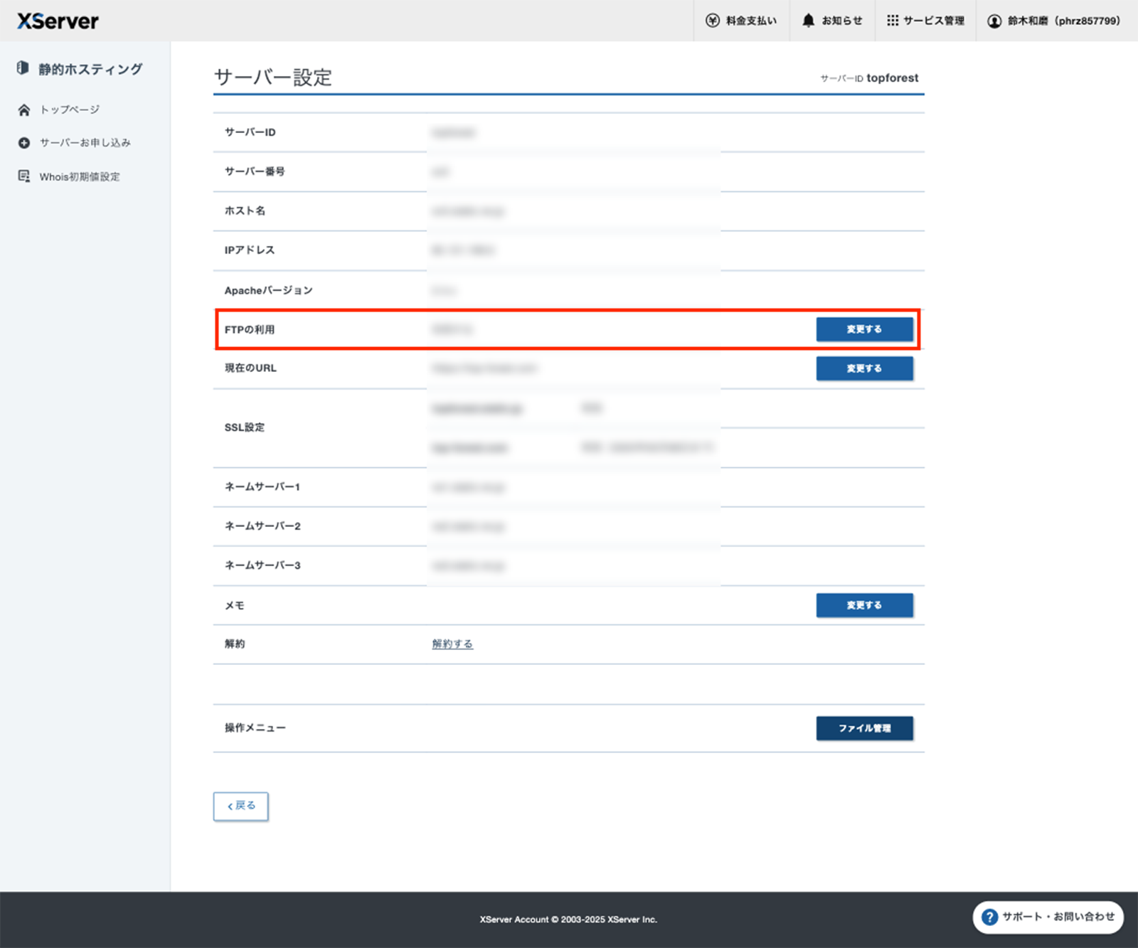 : XServer Static の FTP ユーザー名FTP_PASSWORD